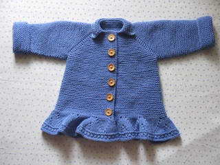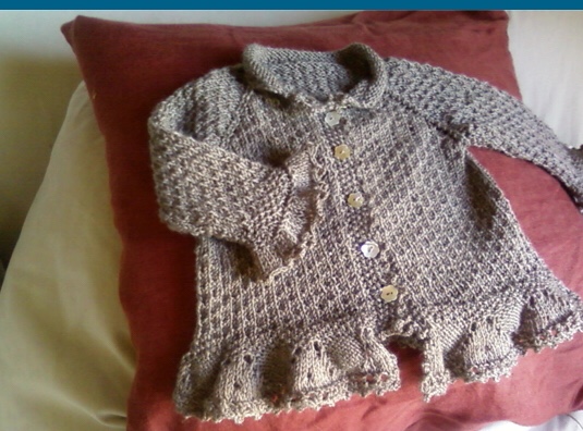 è lavorato dall’alto verso il basso. La scollatura e lo sprone sono lavorati in tondo con i ferri circolari con un delicato motivo traforato. Lo sprone è diviso in maniche, dietro e davanti e lavorato a m rasata. Infine si lav le maniche.
