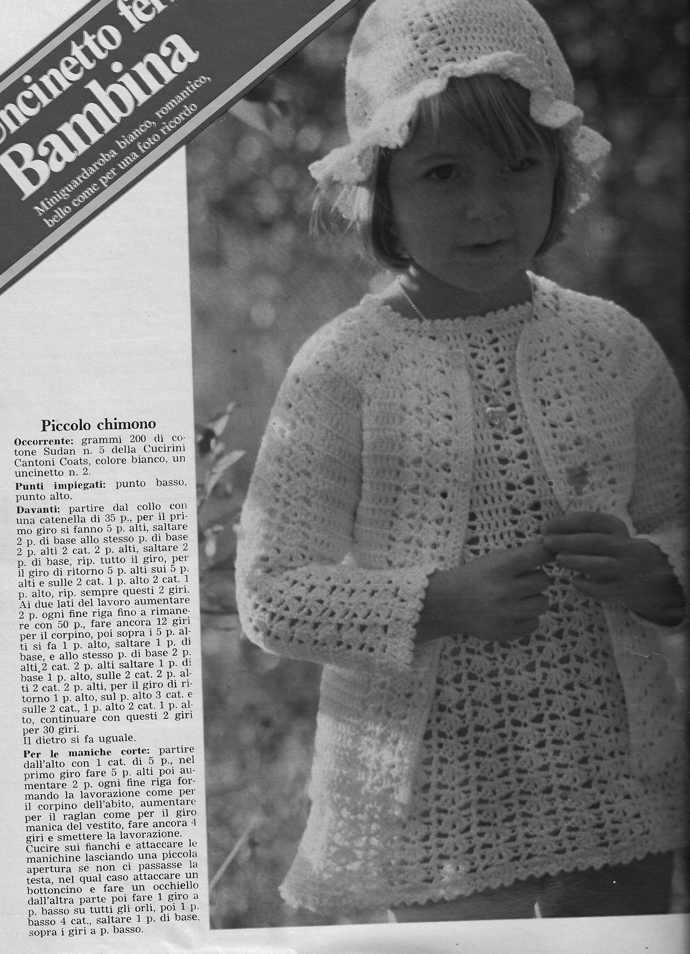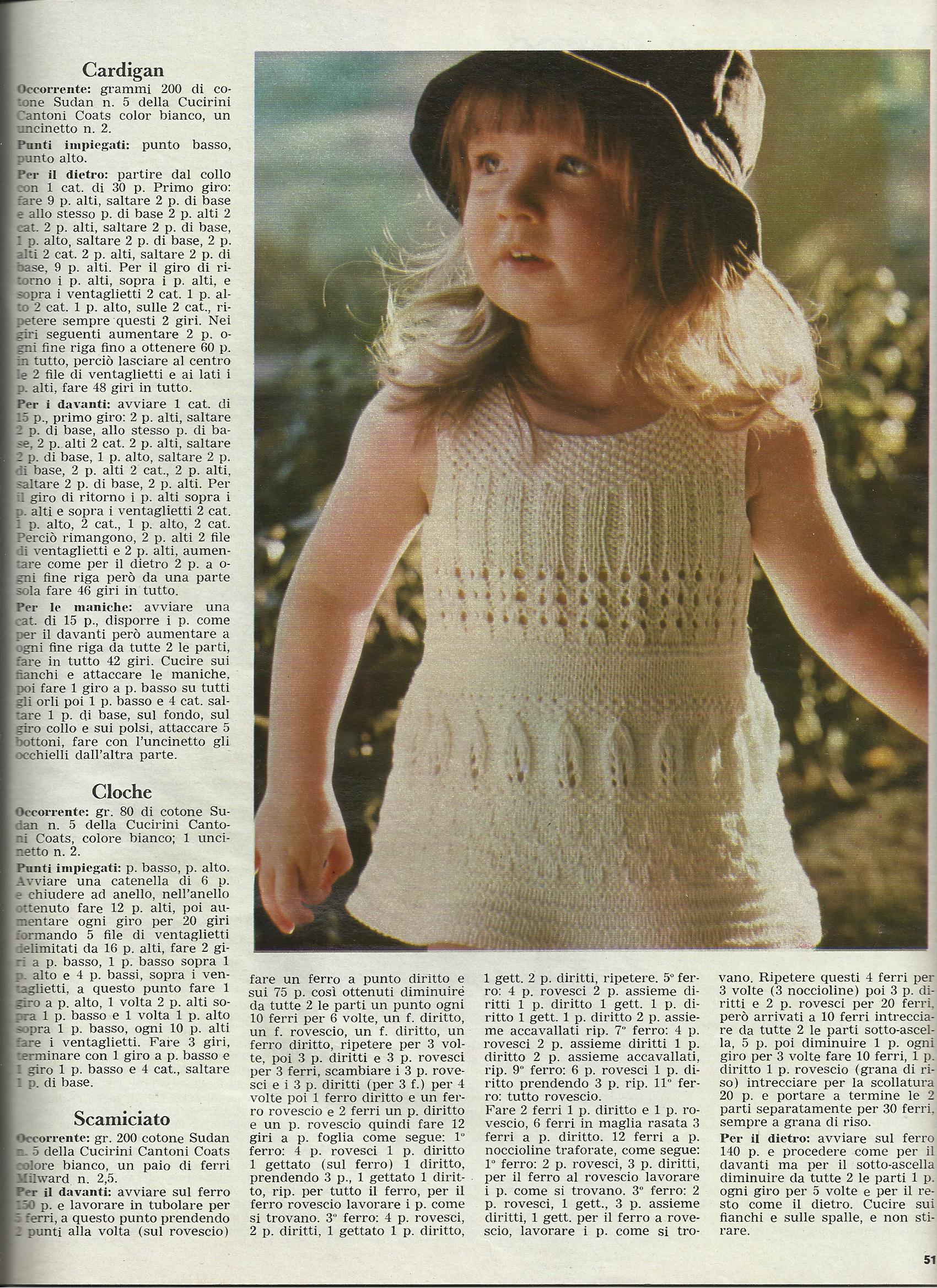 “Mi rifaccio viva dopo qualche mese, per inviarti foto e spiegazione di uno scamiciato ai ferri per bimba, trovato su un vecchio settimanale (BELLA anni ’70); c’è anche un lavoro all’uncinetto.”
