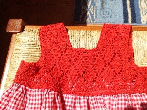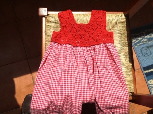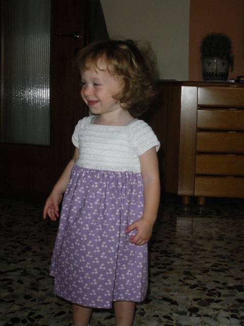 ti mando le foto del vestitino col corpetto top down. Mi pare che l’idea stia avendo un successone, grazie aver cominciato e diffuso il modello!