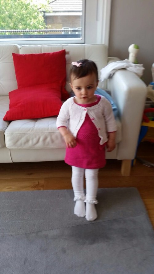 Qualité Thalassa de Phildar (75 % Coton – 25 % Lyocell) : 1 (1/1/1/1) gomitolo col Corail; 3 (4/5/5/6) gom col Meringue; 1 (1/1/1/1) gom co Bengale) ; 1 (1/1/1/1) gom col Piscine.