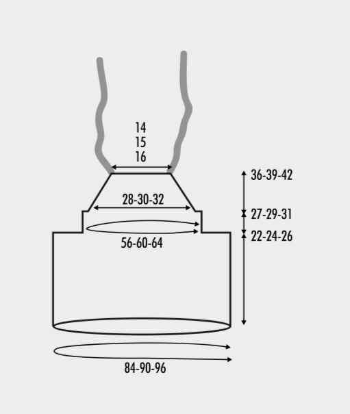 A 21-24-27-30 cm lasciare in attesa le 46-56-66-76 m