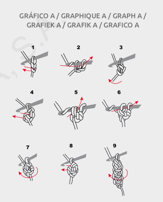 A –a) 22 cm –b) 24 cm –c) 26 cm di altezza, diminuire su un f. –a) 62 –b) 66 –c) 70 m. in questo modo: * 1 dir., 2 ass. a dir. *, lavorare da * a *. Totale: –a) 122 –b) 132 –c) 140 m.