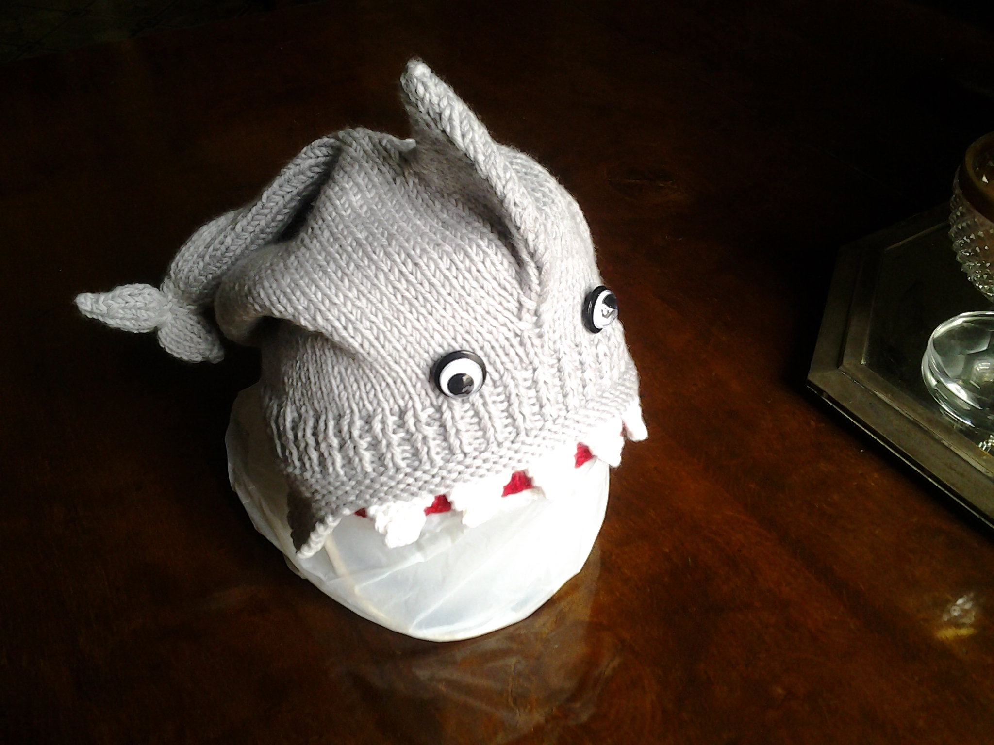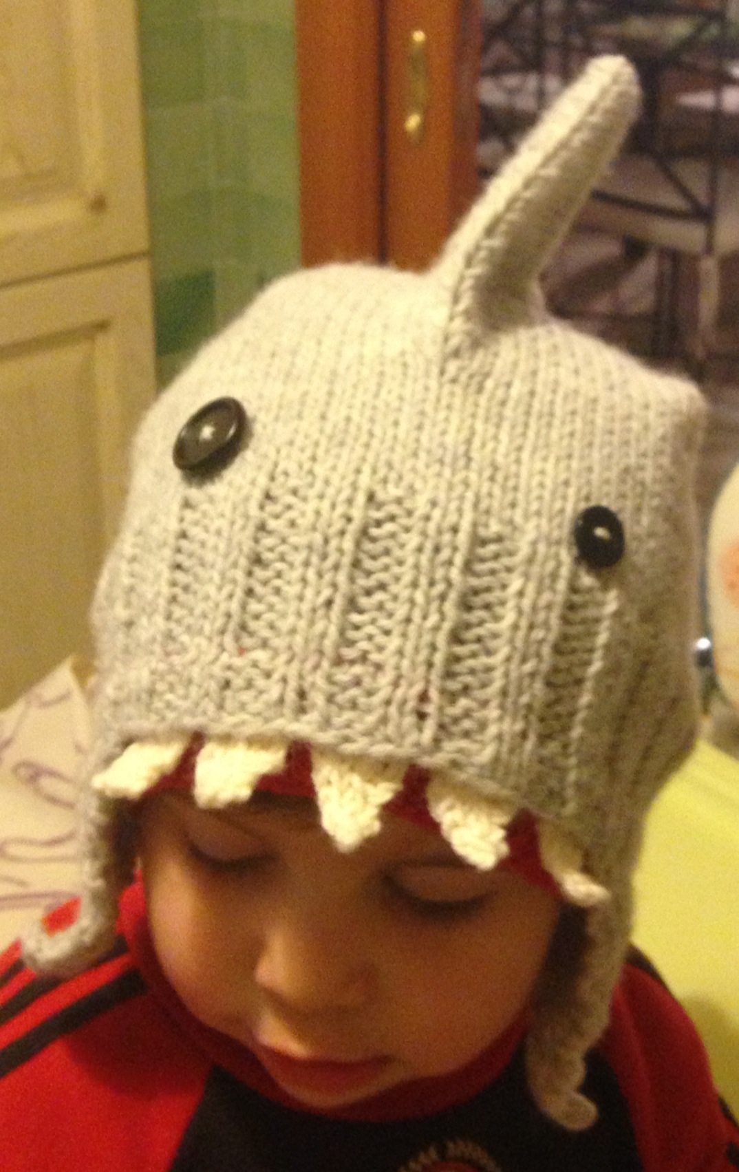 Se lav con i ferri diritti, montate 2m in + per la cucitura e fatela sulla “pancia dello squalo. nella parte posteriore del berretto, fate attenzione, la spiegazione è per i ferri circolari, quindi dove dice di lav ferri diritti, significa a m rasata.