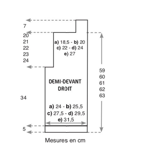Continuare a m rasata fino a che il corpo misurerà 21 (21) 22 (22) 22 cm dallo scalfo terminando con un f sul dir del lav .