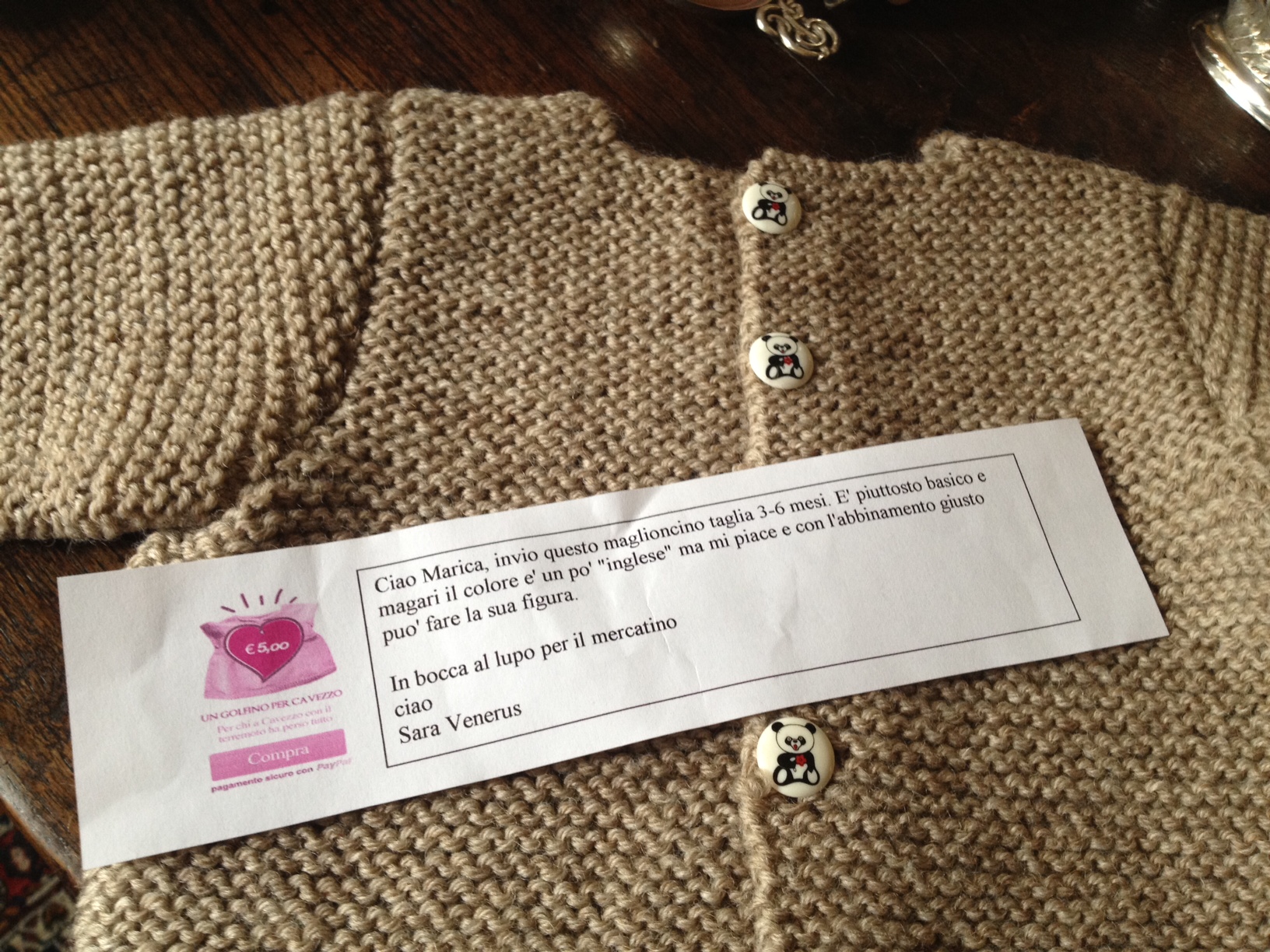Sono d’accordo con quanto hai pensato e deciso, sia per il mercatino di fine settembre a roma(al quale spero di poter partecipare) che eventualmente per altri mercatini in giro per l’italia (bello se ci fossero anche botteghe equo solidali, ce n’era una anche a cavezzo, ora chiusa perchè è sotto il campanile, o quelli di economia di comunione che conosco). A tutti, come hai gia’ fatto tu, chiedo la massima trasparenza: solo in questo modo saremo realmente credibili, e chi compra potra’ sapere, se vuole , dove sono finiti i soldi e a cosa sono serviti. L’ idea di fotografare ogni capo messo in vendita e tenere nominativi delle artigiane, ammesso che non desiderino l’anonimato, puo’ essere l’unico modo per evitare che malintenzionati facciano la stessa cosa ma per guadagnare per loro stessi. E poi, ci fidiamo l’una dell’altra, con grande semplicita’.