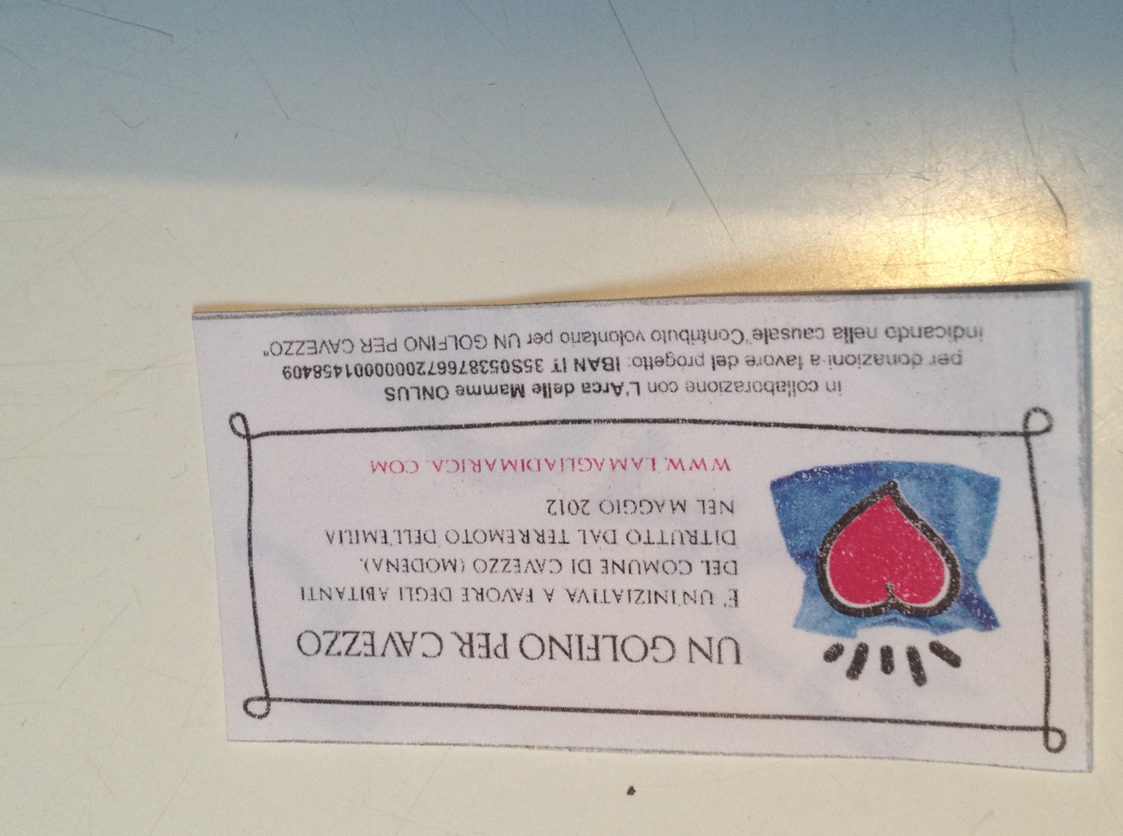 Che altro…. I cartellini ci verranno forniti gratuitamente da un’azienda di carpi, ho appuntamento il 20agosto per definire la cosa. Una volta pronti (quanti ne dovranno stampare lo vedremo ) li spediro’ a te.