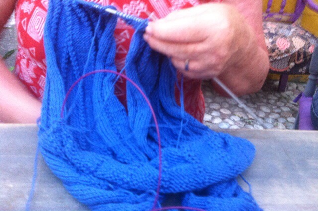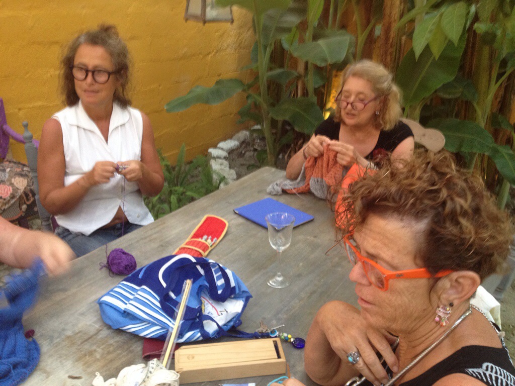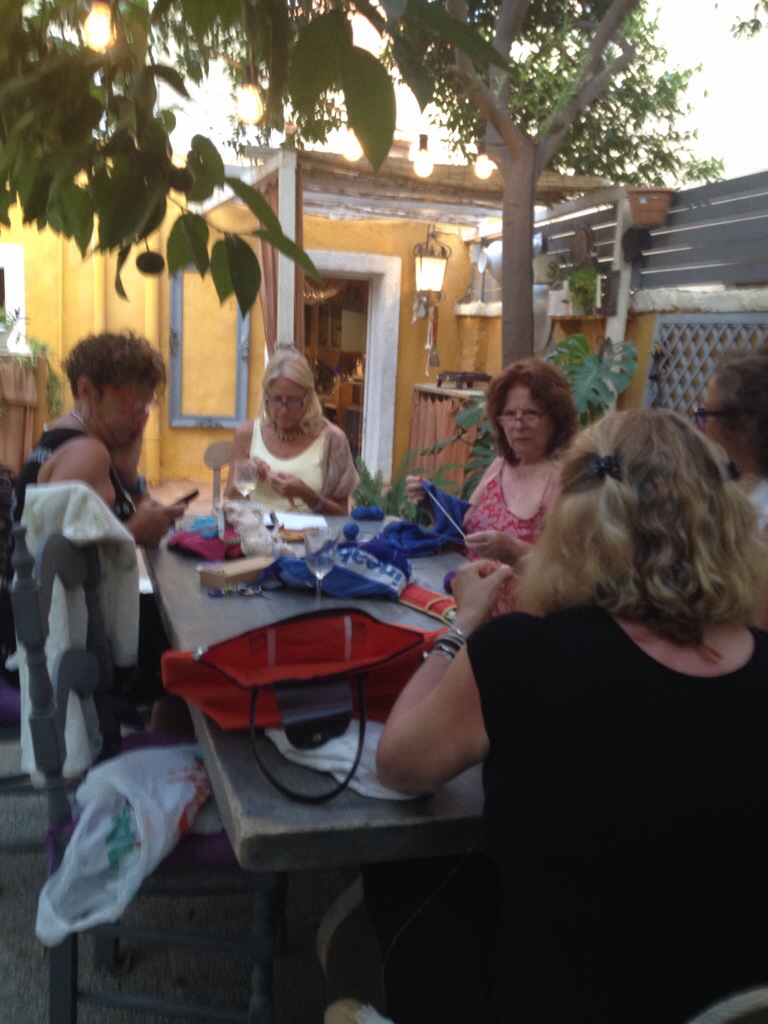 .. Beh, alla fine ce l’abbiamo fatta, il gruppo di maglia si è riunito , dopo una giornata di mare mentre aspettiamo che la carbonella sia pronta per le sarde ( e per le cozze…) giá da qualche giorno la sera ,prima dell’imbrunire.. facciamo uscire i ferri: