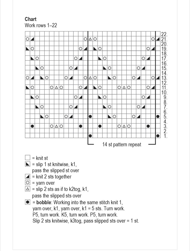G 1: [1dir, SSK, 9 dir,2 ass,1 dir] rip 2 volte. - Giri 2, 4 & 6: dir .