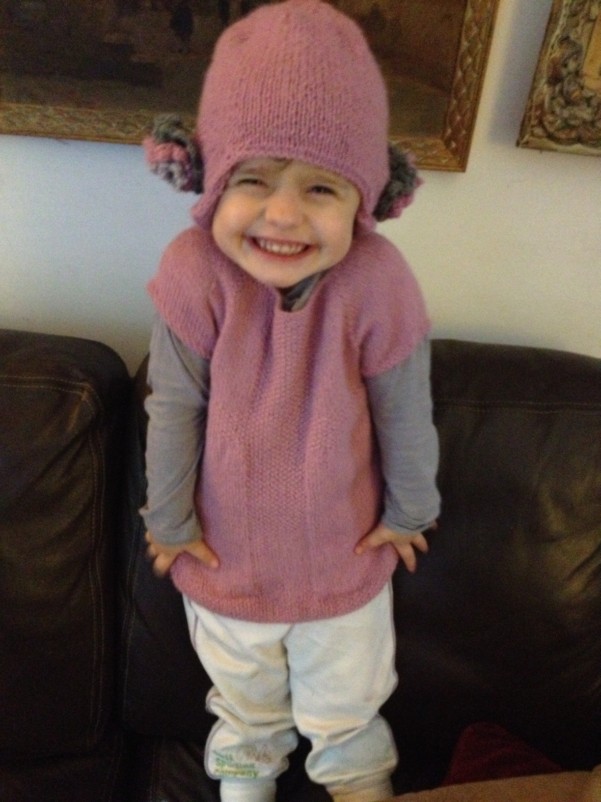 una “vestina top sopra leggings” in alpaca rosa antico di Garnstudio.