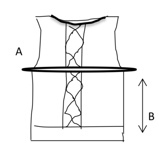 B=LUnghezza dallo scalfo – 33 (35.5, 35.5, 37, 38, 38) cm