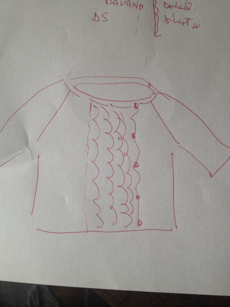 Nella puntata precedente,avevamo completato il corpo e le maniche ,rimaneva la parte centrale del davanti e il bordo del davanti sinistro.
