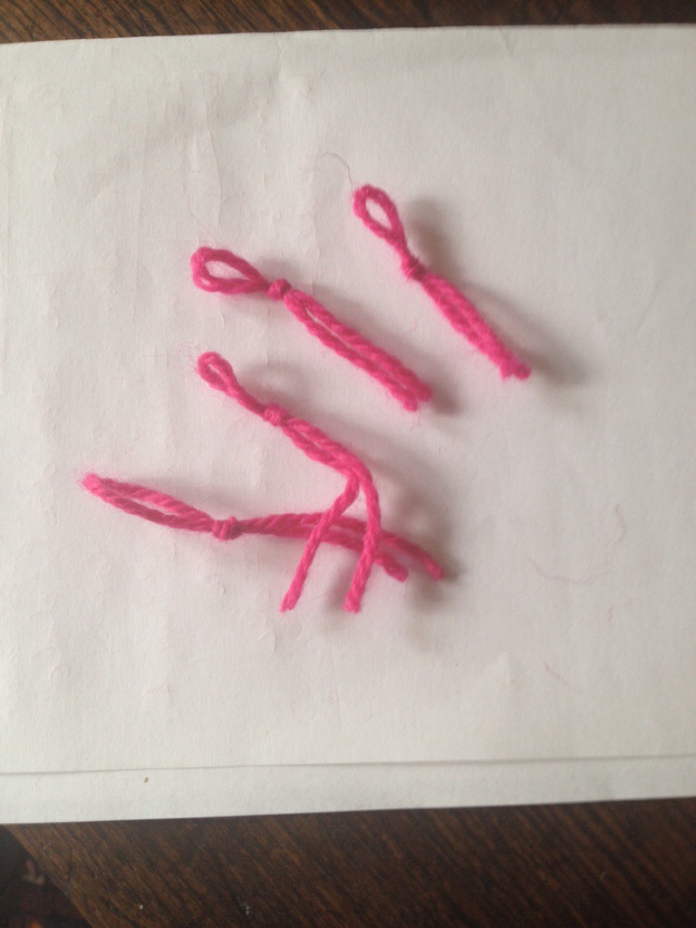 Ora preparo i segnapunti,che io faccio con dei cappietti di lana rossa: