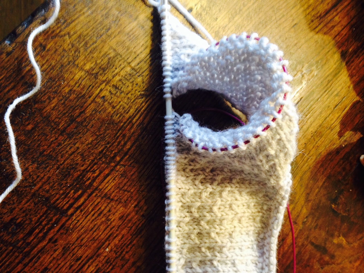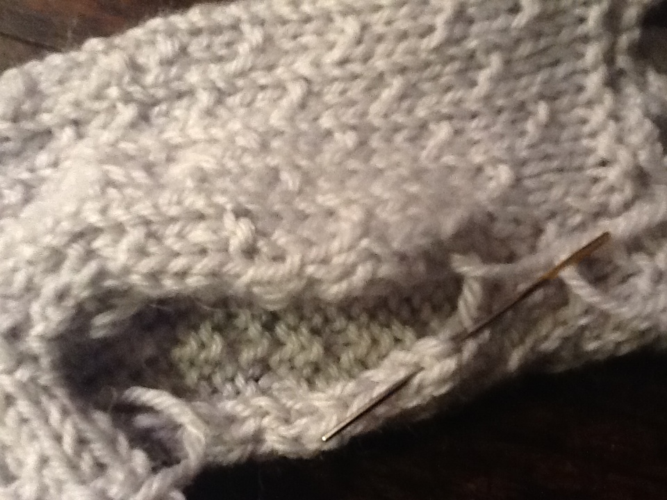 Arrivata alla lunghezza voluta, ho lavorato 3 ferri diritti(il primo sul dir del lavoro senza più il punto seme, un altro sul rov del lav, un terzo ferro dir sul dir del lavoro) e al 4° ferro ho chiuso le maglie facendo dei PICOT: