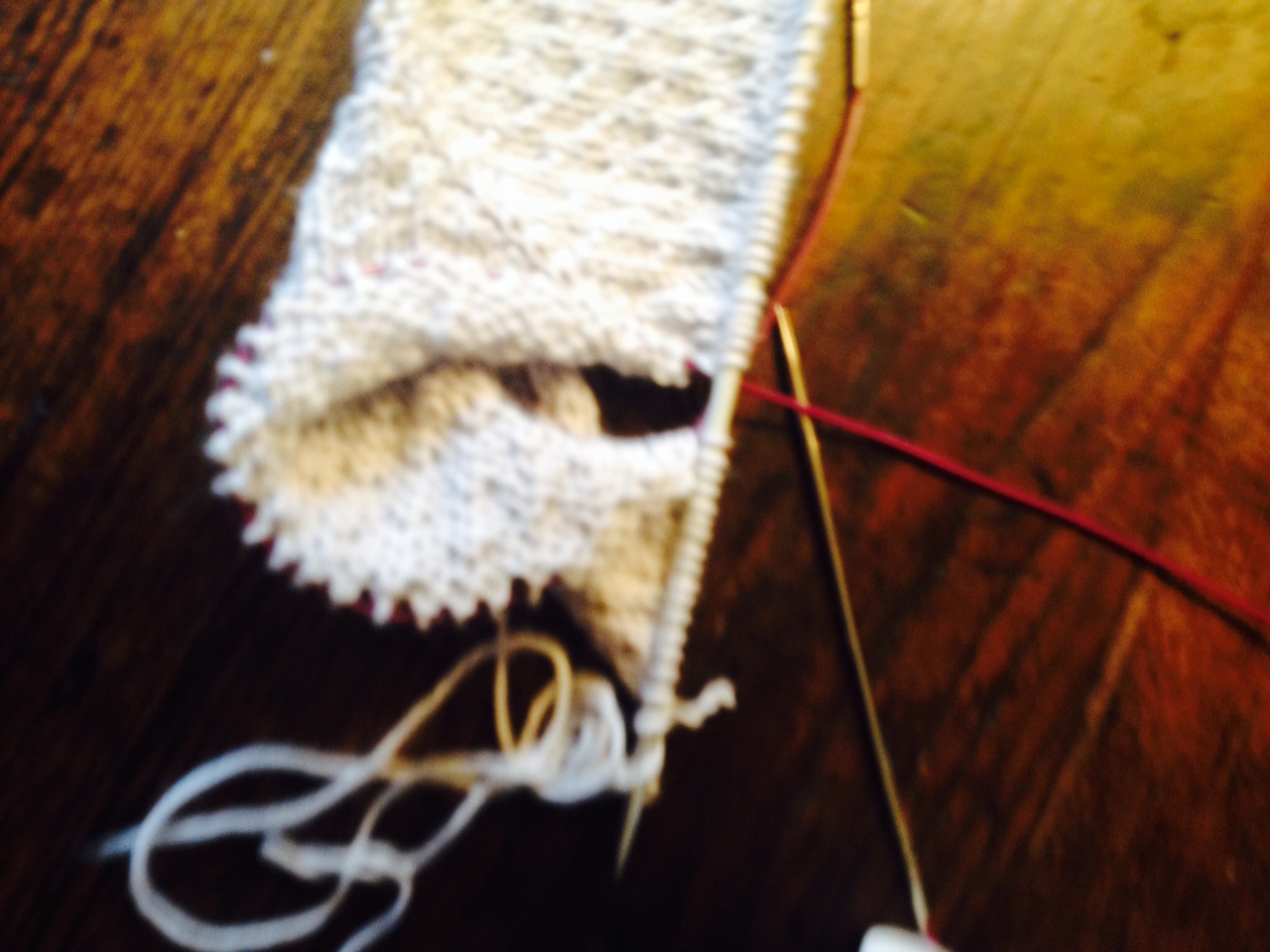 Il ferro succ sará rovescio, sfilo i segnapunti quando li incontro,facendoli cadere dal ferro, e poi li infilo sul ferro di destra,davanti all’ultima m lavorata: