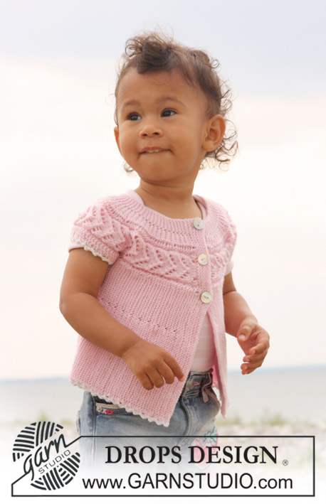 Montare 62-68-78 (88-96) m in modo MORBIDO,con ferri n° 2,5 e il filato rosa pallido , lavorare 8 ferri dir per il bordo del davanti (primo ferro = diritto del lavoro).