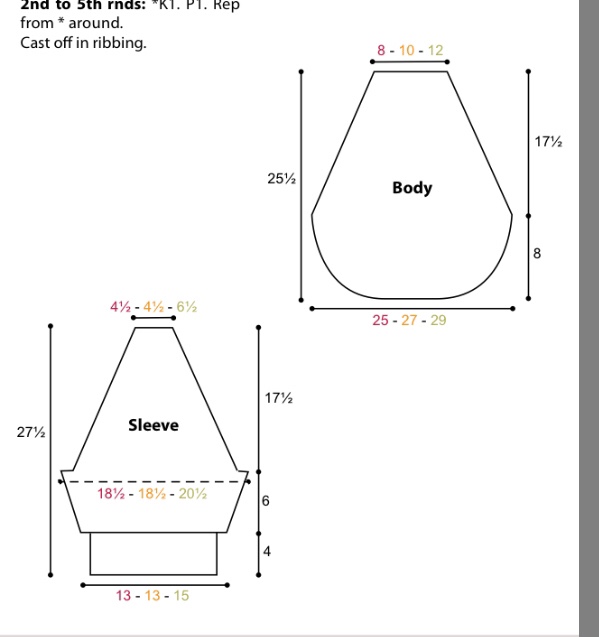 g1: : (1 dir,1 rov) 4 (4-6) volte. 2 ass al dir (raglan). (1 rov,1 dir ) 14 (18- 22) volte . 2 ass al rov (raglan). (1 dir,1 rov) 8 (8-13) volte . 2 ass al dir (raglan). (1 rov,1 dir) 14 (18-22) volte . 2 ass al rov(raglan). (1 dir,1rov) 4 (4-6) volte . 92 (108-140) m rimaste.