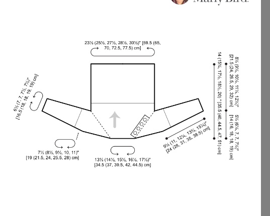 Con i Ferri più grandi montare 36(38) m e sul rov del lav lavorare : 2 rov, ( m del davanti), pm, 1 rov, pm, 6 rov ( manica ), pm, 1 rov, pm, 16 rov (18) (m del dietro ), pm, 1 rov, pm, 6 rov (manica), pm, 1 rov , pm, 2 rov ( davanti).
