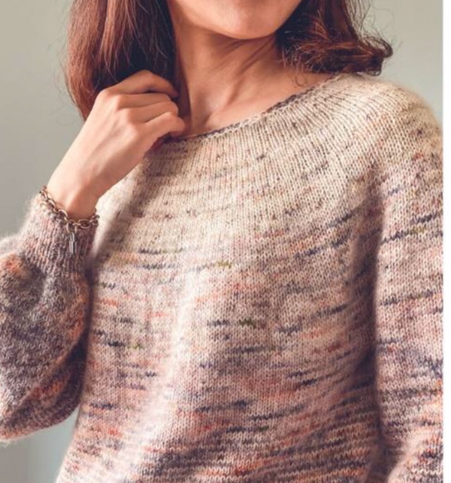 Calade è un pullover largo , con lo sprone a più colori e a p lino per un look leggermente retrò. Il modello include le istruzioni per una versione a maniche corte o lunghe. Entrambe le versioni includono finiture i-cord intorno al collo, orlo inferiore e polsini delle maniche. Entrambe le versioni presentano una caratteristica di contrasto del punto lino sull’orlo inferiore, e la versione a maniche lunghe lo fa anche ai polsini. Lavorato con il filato Lapidario di Echoview Fiber Mill, una miscela Merino e Tencel