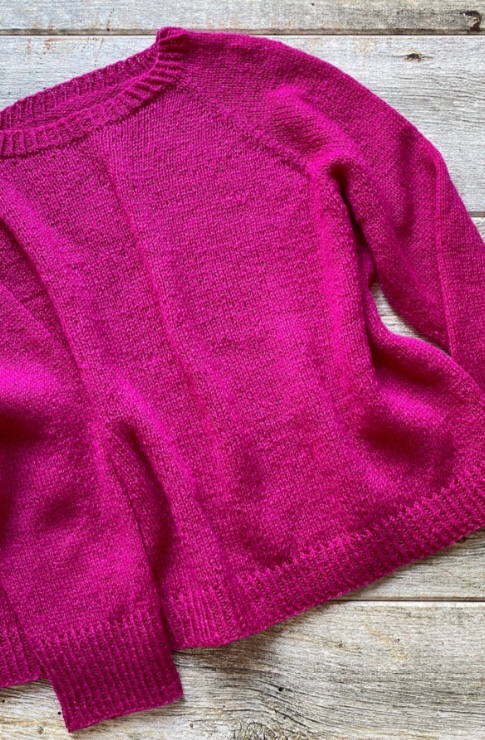 BRIGHT SIDE è un pullover raglan basico che viene lavorato in tondo dall'alto verso il basso e con bordi a coste ritorte su collo, polsini e orlo. Ha una forma squadrata , facile da indossare sopra abiti o gonne e pantaloni a vita alta. Abbiamo optato per un fuxia ultra brillante, ma questo è un capo essenziale del guardaroba che sarà bello in qualsiasi colore. Rispetto ad altri top Down in cui gli aumenti ai raglan vengono fatti sia ai lati del davanti che ai lati delle maniche ( 8 aum ogni due ferri)qui si alternano : una volta 8 aumenti ( maniche e corpo) e una volta 4 aum : solo davanti e dietroPer alzare il dietro rispetto al davantisi faranno dei ferri accorciati con il metodo German short rosa, lavorando solo la parte dietro e girando il lavoro.