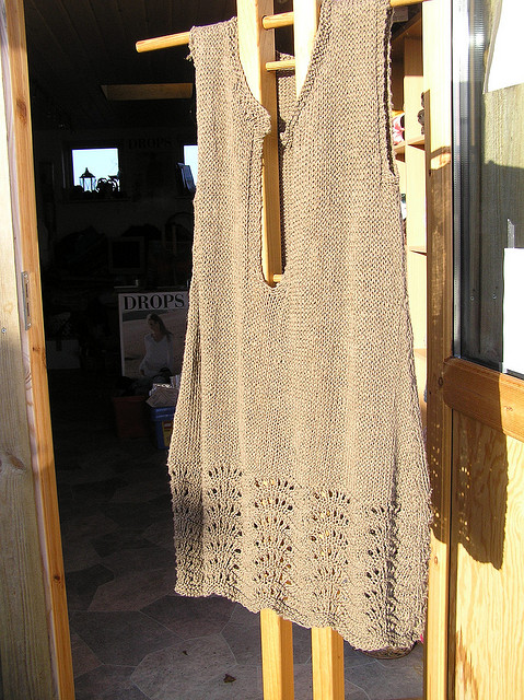 The top is worked with pattern on the middle stitches on the front and back. The side pieces and the shoulders are worked in garter stitch.