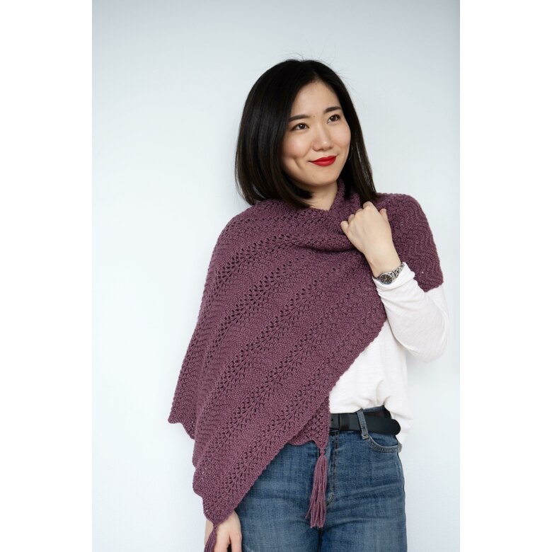 Nascondere i fili sul rovescio del lavoro. Immergere la sciarpa in acqua tiepida, arrotolare lo scialle in un asciugamano per togliere la maggior parte dell’acqua. Fissare lo scialle alle misure date mettendo degli spilli per fissare il bordo traforato e lasciarlo fino ad asciugatura completa .