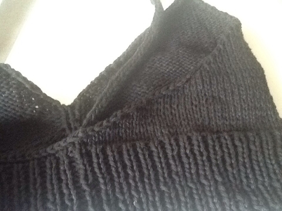 Proseguire diritto fino a che lo scalfo misurerà ; 16.5 (17.75, 17.75, 19, 19, 19) cm finendo al rov del lav.