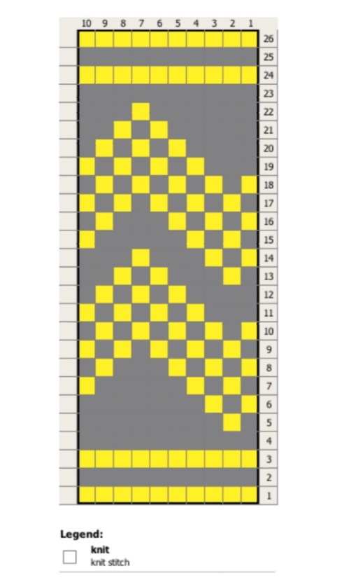 Rip questi 2 ferri Per 3/4 cm e dopo aver messo un marker ai lati delle 16 m centrali inizio a lav il cuore con il giallo; il filo bianco non il lavorazione lo incrocio con il giallo dietro al lavoro ogni 4/5 m