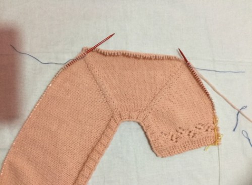 Mentre aggiungiamo le maglie inizieremo anche a fare gli aumenti ai raglan..