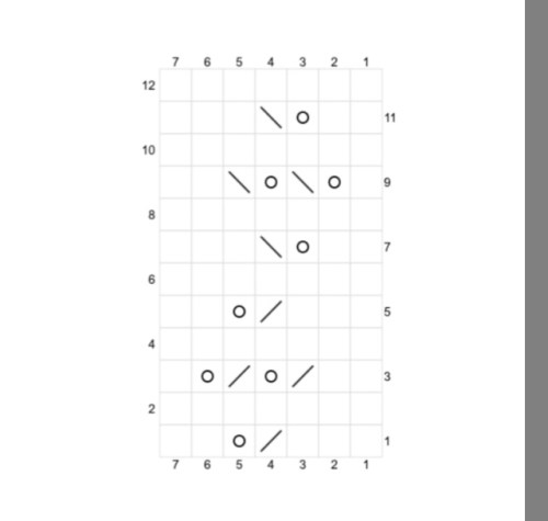 g 4: *Passare una maglia a rovescio, due diritti, accavallare la maglia passata su i due diritti, tre rovesci*ripetere per tutto il giro