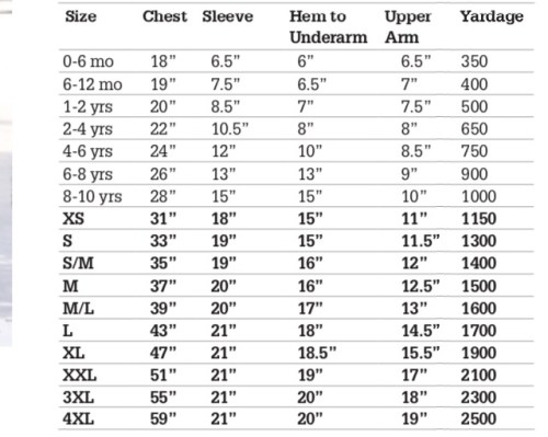 96 (102, 108, 114, 120, 120) m per davanti e dietro e 66 (70, 74, 78, 82, 80) m per ogni manica.
