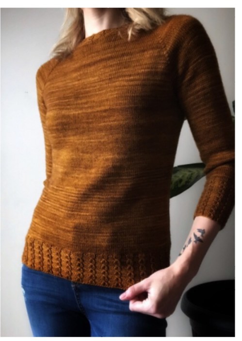 molto semplice e basico con l’aggiunta di un tocco personale con le treccine al fondo e al collo Il motivo a false trecce è divertente e facile da realizzare e da memorizzare. Lavorato con il filato sottile come il Biscotte’s Bis-Sock yarn Sarà il pullover perfetto da indossare in tutte le stagioni.