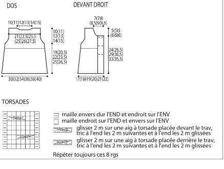 –A 24 (26,5) 29 (30,5) 33 (35,5) cm per lo scollo dim a ds 1 x 8 (9) 10 (8) 9 (10) m, poi ogni 2 ferri 2 x 2 m e 3 x 1 m (2 x 2 m e 3 x 1 m) 2 x 2 m e 3 x 1 m (3 x 2 m e 4 x 1 m) 3 x 2 m e 4 x 1 m (3 x 2 m e 4 x 1 m).